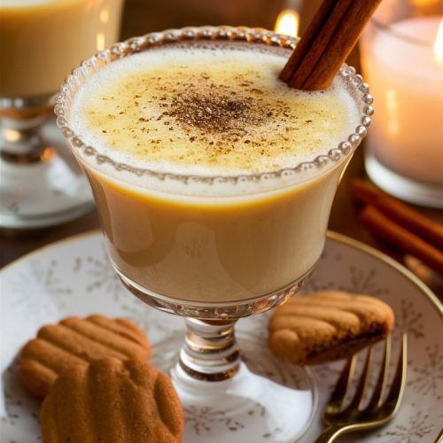 When ready to serve, pour the chilled eggnog into glasses and sprinkle freshly grated nutmeg on top. The nutmeg adds a warm, aromatic touch that perfectly complements the rich, spiced drink.